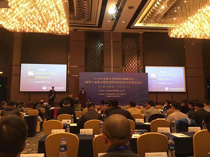 2018年11月21日,由中國(guó)膠粘劑和膠粘帶工業(yè)協(xié)會(huì)主辦、科思創(chuàng)聚合物(中國(guó))有限公司和上海摩田化學(xué)有限公司協(xié)辦的“2018年全國(guó)水性膠粘劑高峰論壇暨第九屆聚合物乳液膠粘劑技術(shù)與信息交流會(huì)”在南京富力萬達(dá)嘉華酒店盛大開幕。本屆會(huì)議以“水性膠粘劑的創(chuàng)新驅(qū)動(dòng)力”為主題,共吸引了來自全國(guó)各地的水性膠粘劑及其原料生產(chǎn)企業(yè)、經(jīng)銷商、科研院所、材料檢測(cè)檢驗(yàn)機(jī)構(gòu)以及一些水性膠粘劑的施工應(yīng)用單位的代表共270余人參會(huì)。